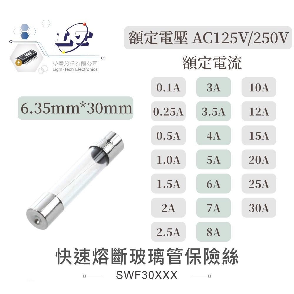聯騰.快速熔斷玻璃管保險絲10入 6.35mm*30mm 0.25A 0.5A 0.6A 1.0A 1.5A 2A
