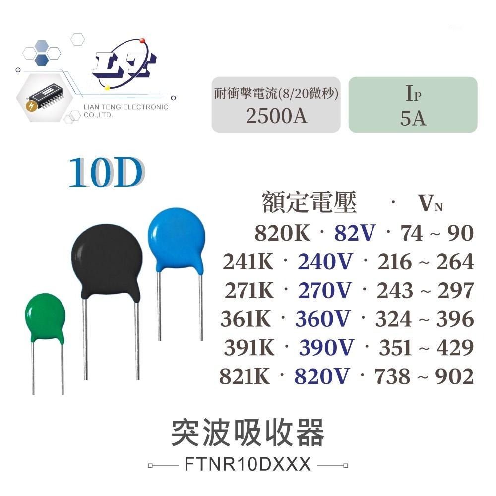- 10D271K:額定電壓270V,動作電壓243 ~ 297V