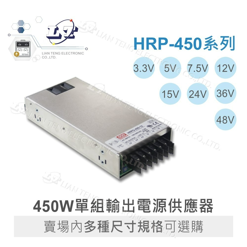 HRP-450-7.5 → 7.5V / 60A / 450W HRP-450-12 →12V / 37.5A / 450W