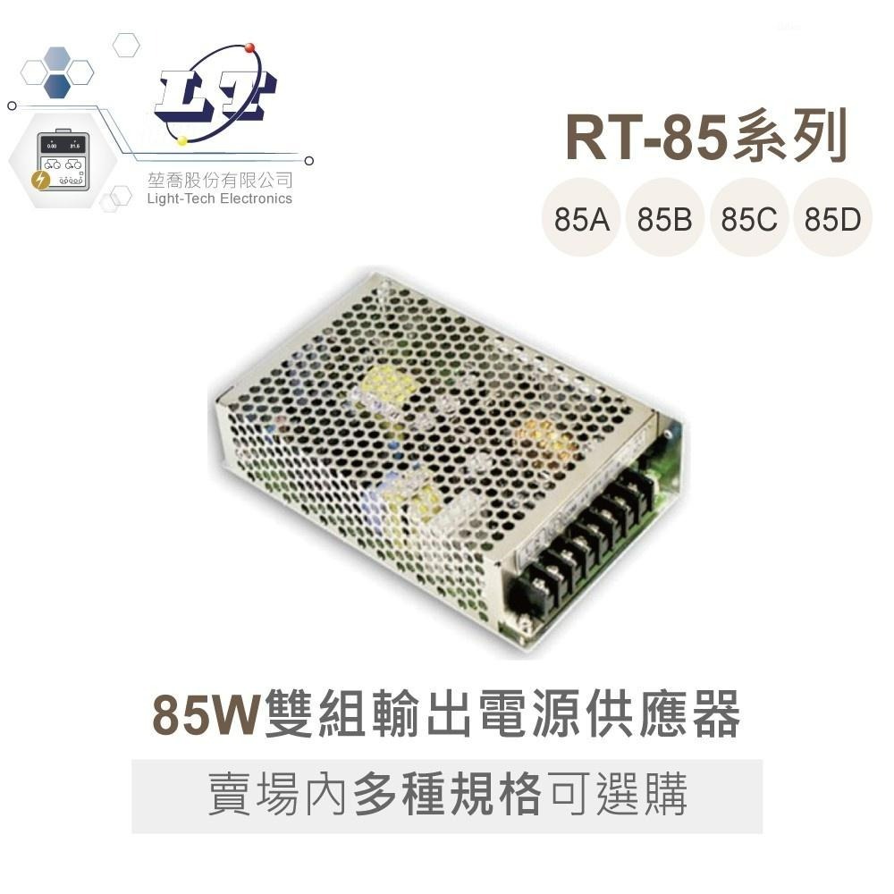 #RT-85A → 5V/8A|12V/3.5A |-5V/0.5A #RT-85B → 5V/8A|12V/3.5A |-12V/0.5A #RT-85C → 5V/7A|15V/3A |-15V/0.5A #RT-85D → 5V/6A|24V/2A |12V/1A