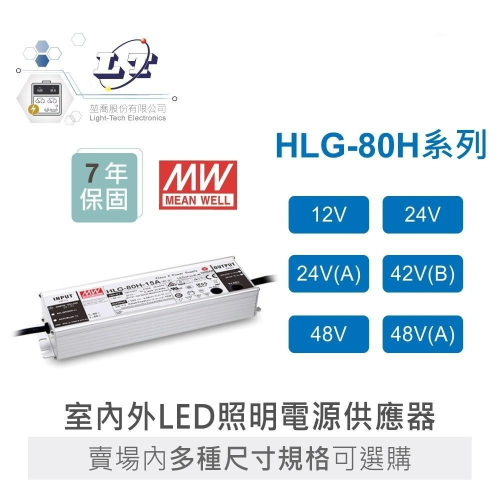 HLG-80H-42B:42V / 1.9A(具備1~10V/PWM/電阻調光功能)