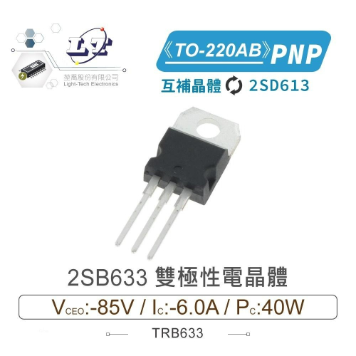 #2SB633 #PNP #雙極性電晶體 #-85V/-6.0A/40W #TO-220AB #互補晶體 2SD613