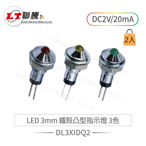聯騰.LED 3mm鐵殼凸型指示燈|紅黃綠光|DC2V/20mA|面板用|2入裝