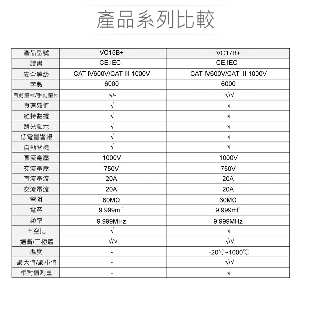 #VC17B+#智能量測#多功能數位電錶#高精度顯示#真有效值測量#550V高壓保護#20A電流測量#自動/手動量程#最大/最小值測量#接觸性溫度測量#資料保持#背光顯示#防折斷支架#電子測試#DIY創客#設備維修#電力系統檢測