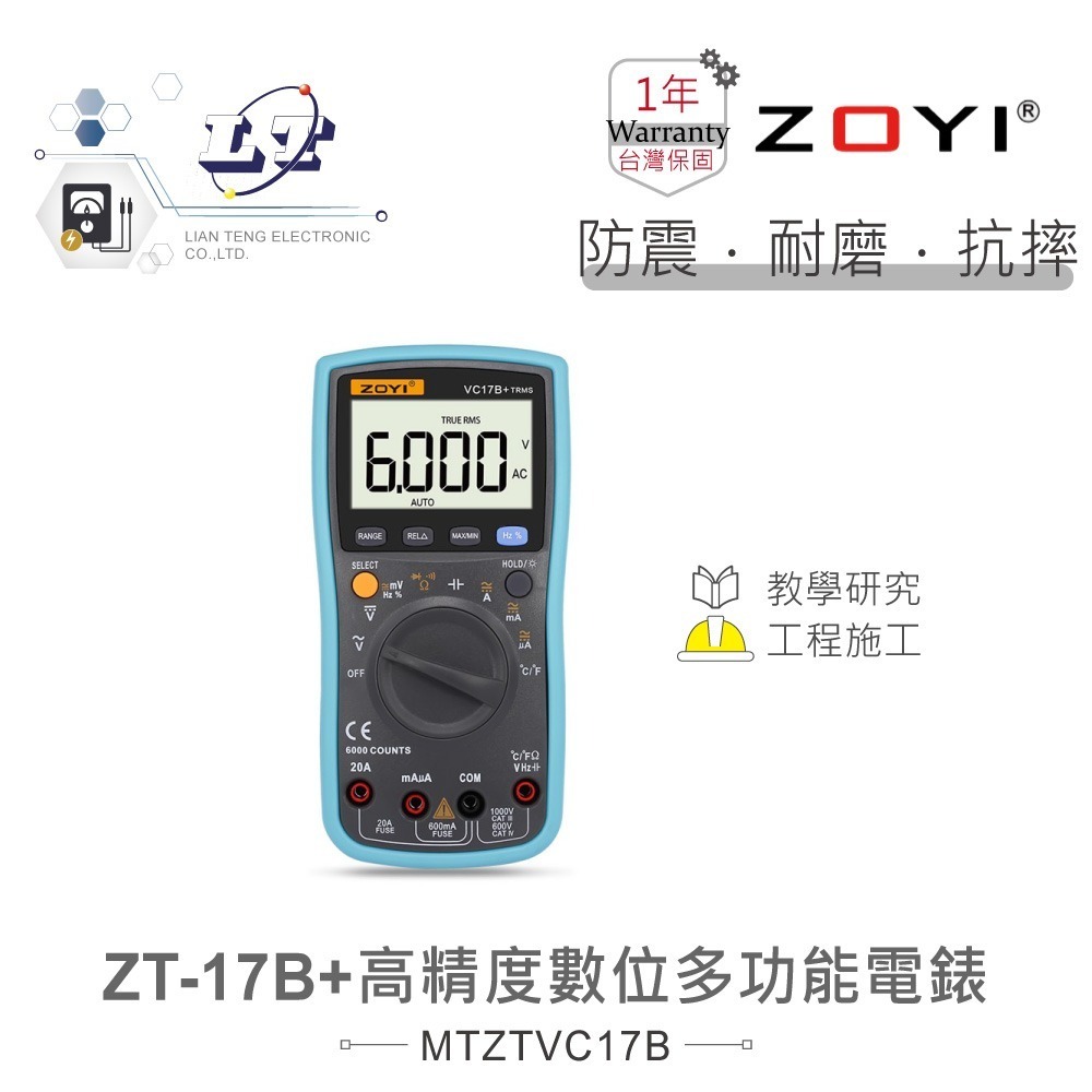 聯騰.C17B+ 數位電錶 智能量測 20A電流測量 550V高壓保護 接觸性溫度測量 ZOYI眾儀電測 一年保固