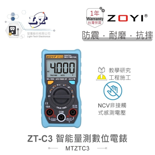 聯騰.ZOYI ZT-C3 智能量測數位電錶 交直流電壓/電阻/頻率/溫度測量 10A大電流測量550V高壓保護 一年保
