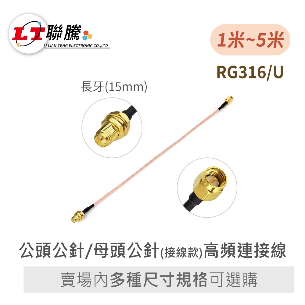 聯騰.RG316 同軸傳輸線|SMA公頭公針15mm牙長/母頭公針 接線款|高頻射頻穩定傳輸|多長度選擇