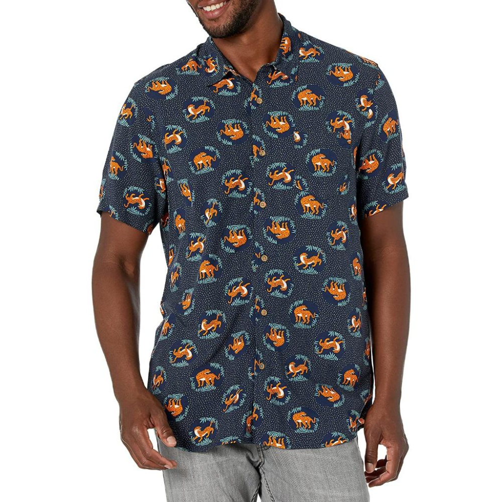 UNIONBAY【M】短袖襯衫 夏季 輕盈透氣 花襯衫 花豹圖 人造絲 全新 現貨 保證正品