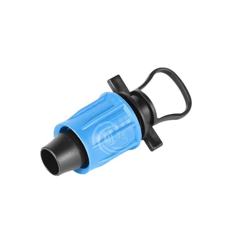 藍帽鎖扣堵頭:具備 防水壓脫落與高密封性,適合 大棚微噴滴灌或高壓農業灌溉系統,更耐用可靠。