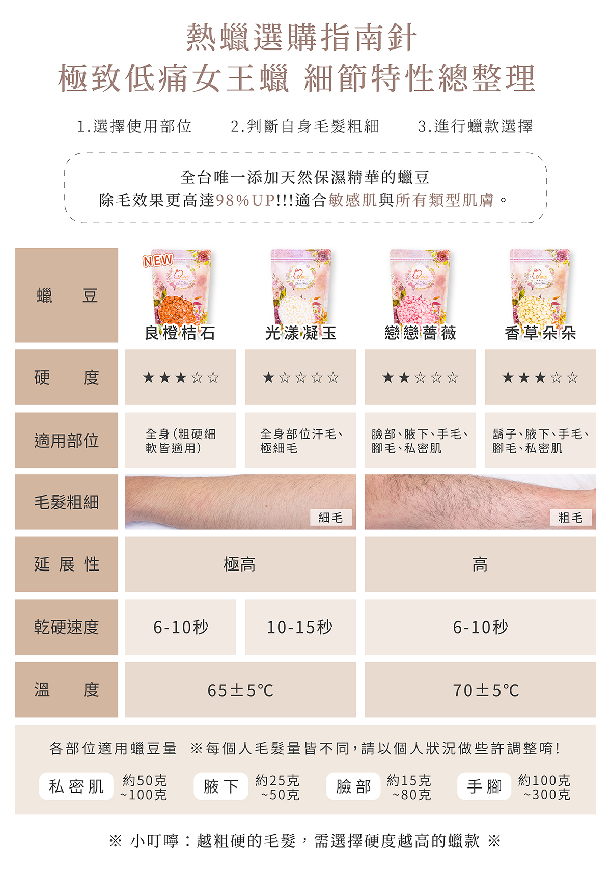 全身蠟豆種類及容量