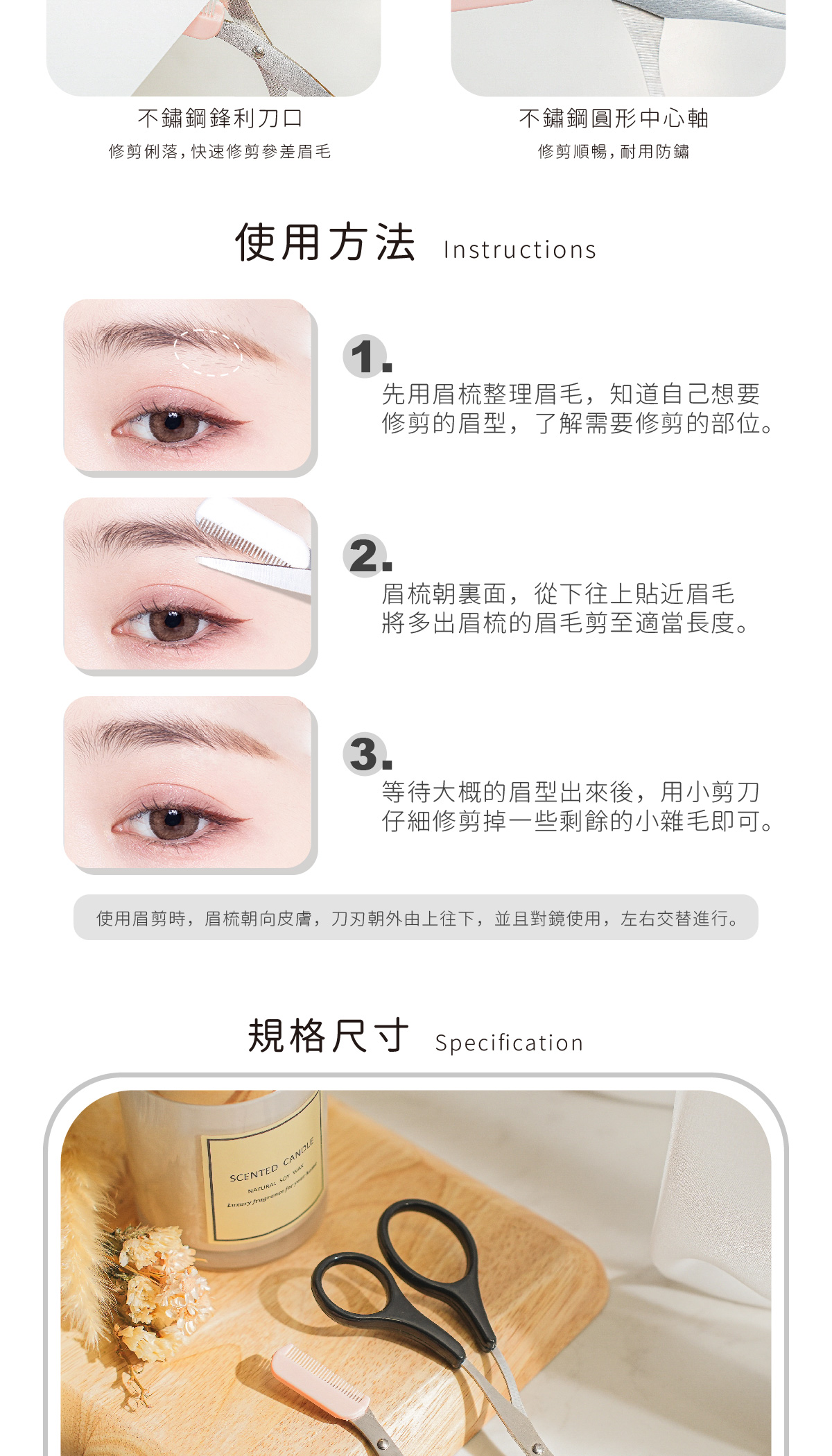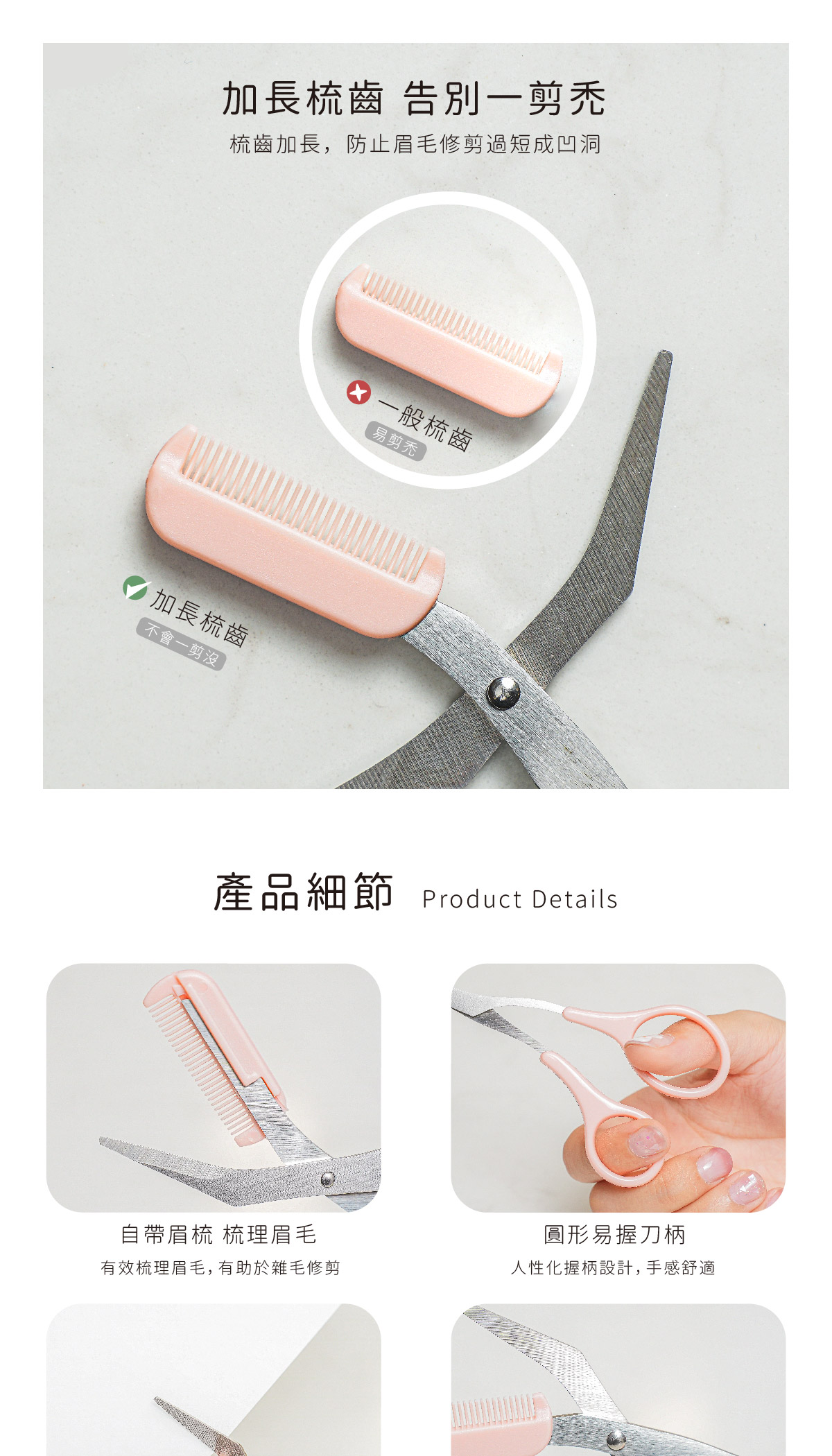 • 梳剪兩用 - 安全修眉剪【粉色的】