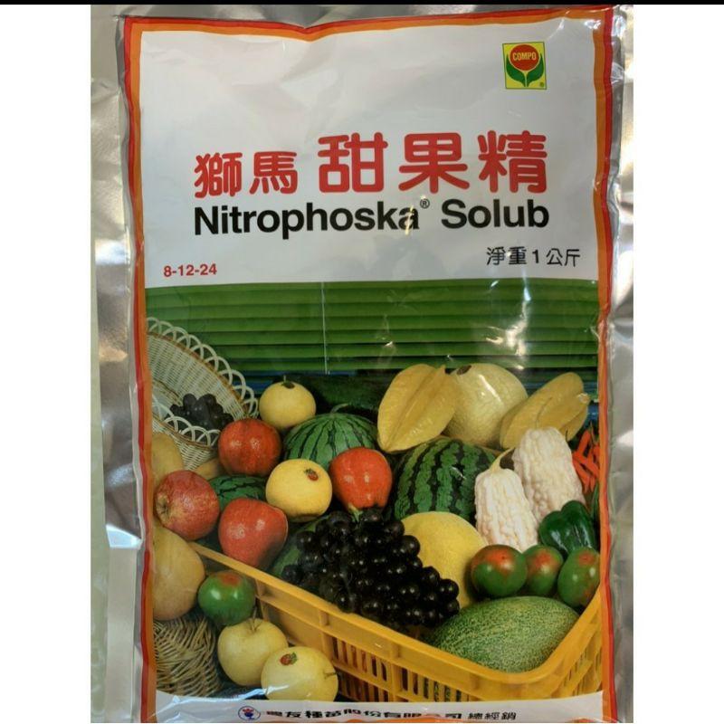 獅馬甜果精Nitrophoska Solub 1公斤裝 肥效快速 ,開花前後使用,中果期至成熟期使用速效性增加