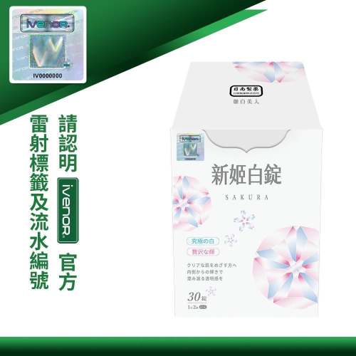 成 分: 微結晶纖維素、櫻花萃取、魚膠原蛋白、硬脂酸鎂、二氧化矽、玫瑰花辦萃取、雞冠萃取物(含透明質酸鈉)、L-色胺酸、西印度櫻桃萃取、余甘子萃取、鮭魚鼻軟骨萃取。 規 格:0.3公克/錠,30錠/盒 食用方式:每日一次,每次1-2粒,搭配250cc溫水食用。 注意事項:1. 孕婦、服用藥物者及患有特殊疾病者,使用前需先諮詢醫療人員後再使用。