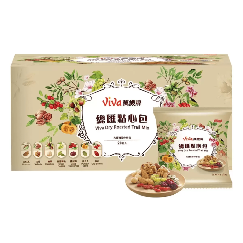 - 內含杏仁、蔓越莓乾、核桃、榛果、綠葡萄乾、枸杞及南瓜籽仁。