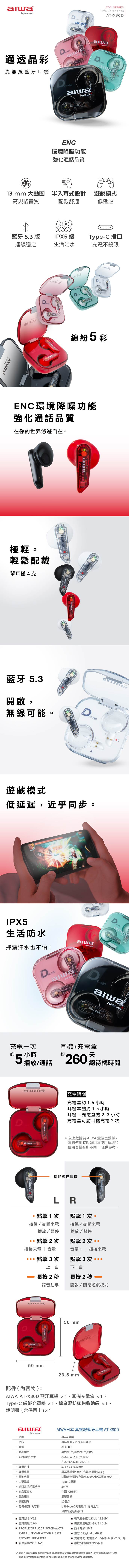 品名:AIWA 愛華 真無線藍牙耳機 AT-X80D