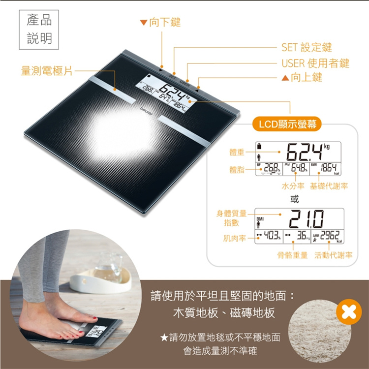 * 體脂率/水分率/肌肉率最小顯示單位:0.1%