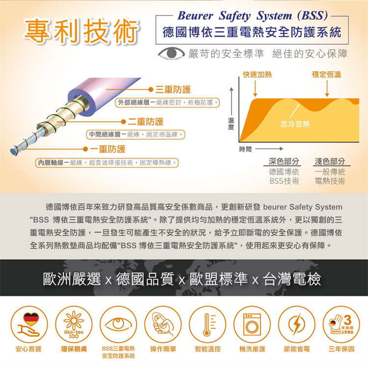 * 安全性:德國博依三重電熱安全防護系統 (BSS),防止過熱保護設計