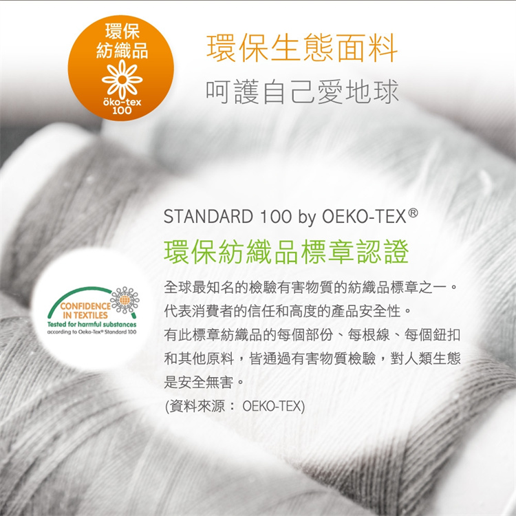 * 其他:獲得Oeko-Tex Standard 100 環保紡織品標章的認證