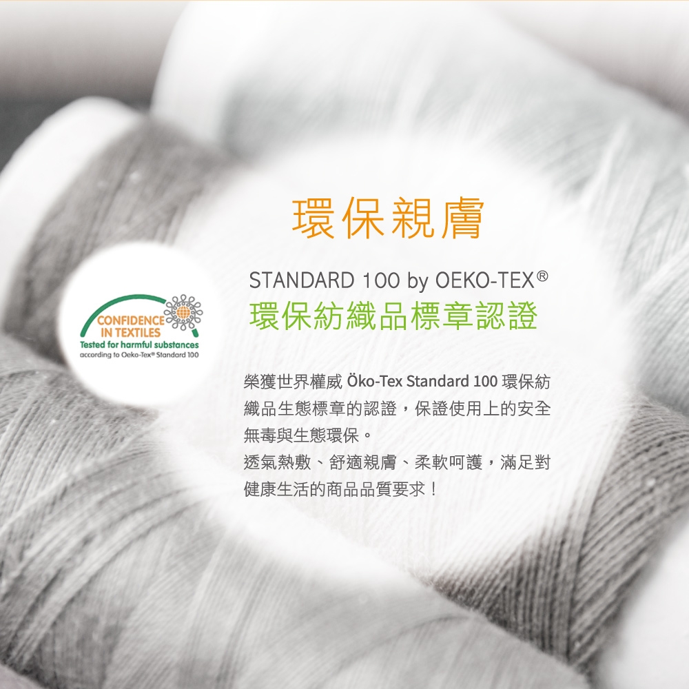 * 環保認證:Oko-Tex Standard 100 環保紡織品標章的認證