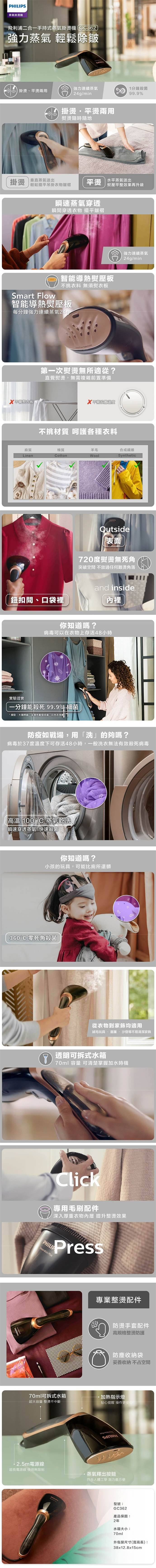*掛燙、平燙兩用加上每分鐘24g強力連續蒸氣,快速熨燙!