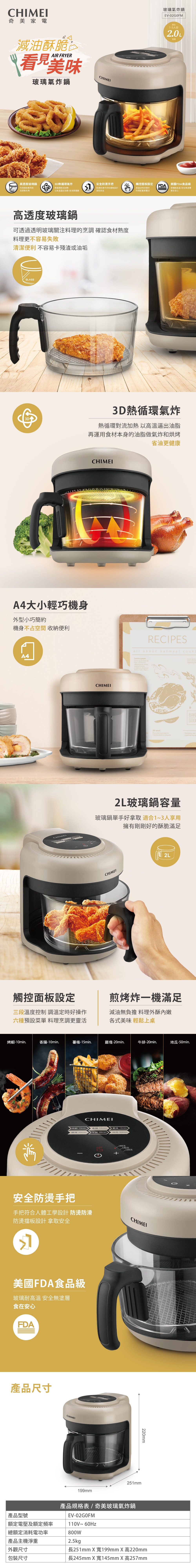 【CHIMEI奇美】3D熱循環玻璃氣炸鍋 (EV-02G0FM)