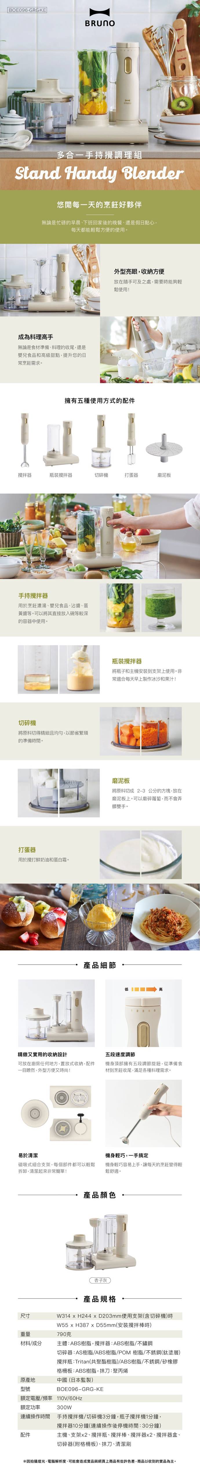• 配件:主機、支架 × 2、攪拌瓶、攪拌棒、攪打器(攪拌器 × 2)、切碎器(含磨泥盤)、刮刀、攪打器盒、清潔刷