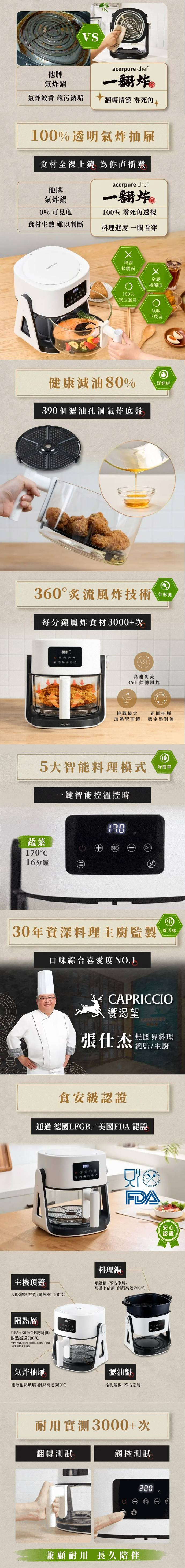 【acerpure】Chef 一翻炸 二合一翻轉空氣炸鍋-岩鹽白 KF754-70W