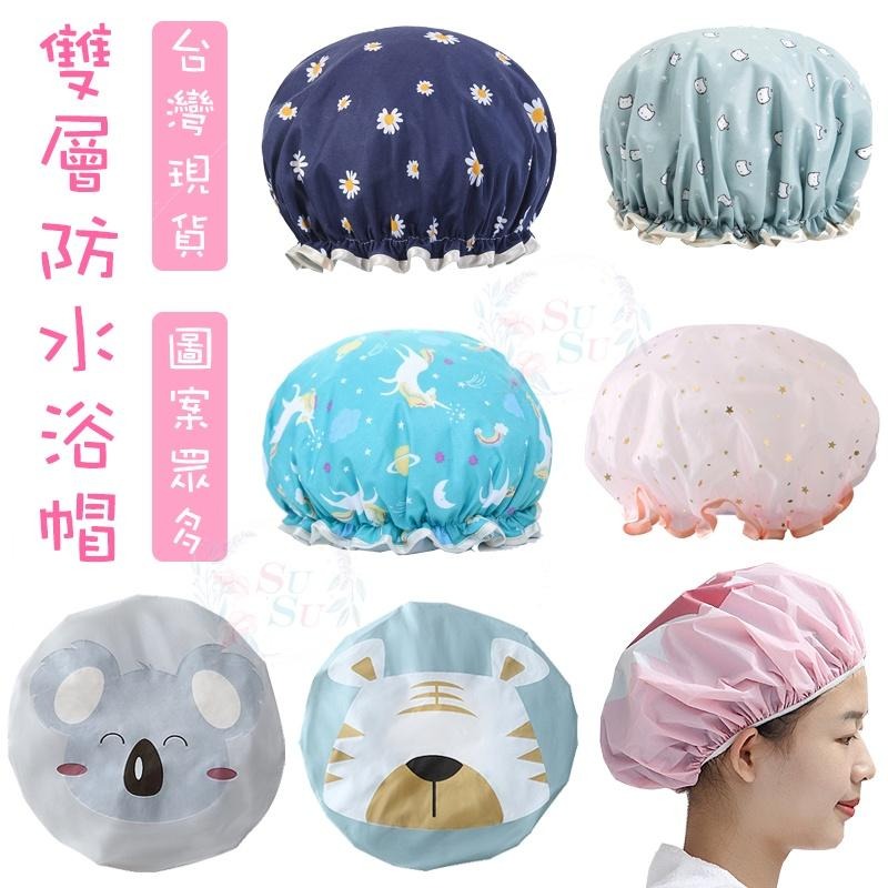 ✨SuSu✨單/雙層防水浴帽 台灣現貨 洗頭帽 頭髮帽 小雛菊 動物圖案 海底生物 夢幻星星 買五送OHNI洗沐旅行包