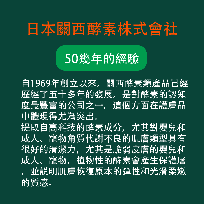 ※日本關西酵素株式會社,自1969年創立以來,關西酵素類產品已經歷經了五十多年的發展,是對酵素的認知度最豐富的公司之一。這個方面在護膚品中體現得尤為突出。