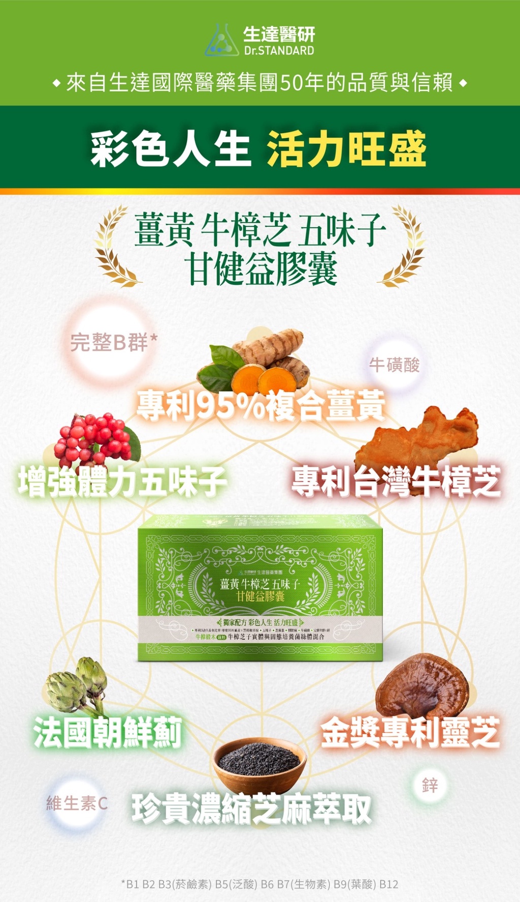 生達醫研 Dr.Standard 薑黃牛樟芝五味子甘健益膠囊(60粒/盒)