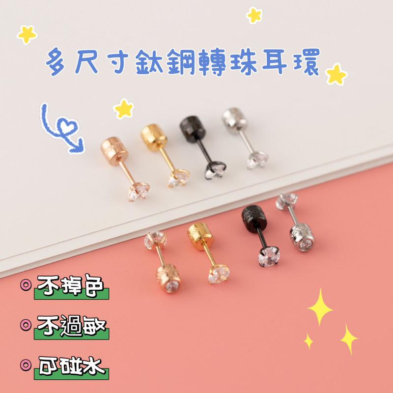 【台灣現貨】多尺寸鈦鋼轉珠耳環 男女通用 不掉色耳針 不過敏耳環 養耳耳針 鎖珠耳環 醫療鋼耳針 不鏽鋼耳環