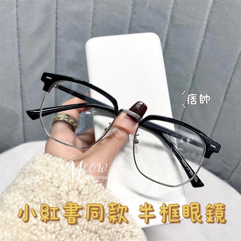 Meow acc【台灣現貨】小紅書同款半框眼鏡 無度數眼鏡 細框眼鏡 男生半框眼鏡 女生眼鏡 痞帥眼鏡