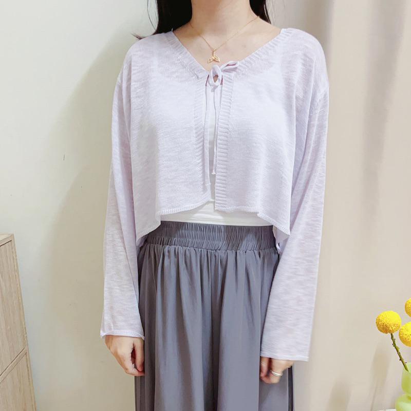 現貨♡ 5061M 綁帶 短版 肌理雪花紋 透膚 針織 上衣 長袖上衣 短版上衣 短版針織