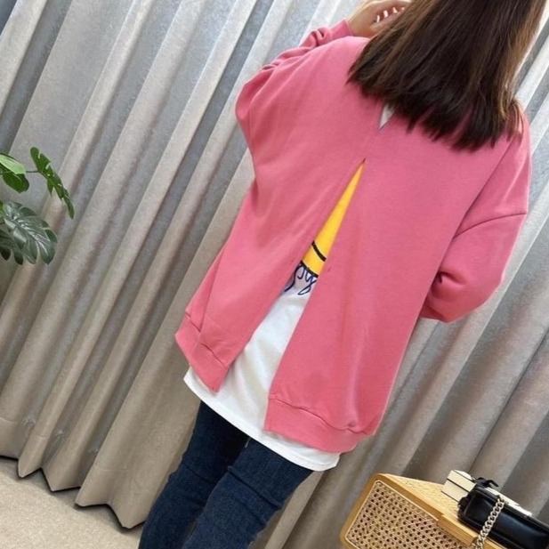 現貨♡ 600175 刺繡 微笑 開叉T 微笑T 二件式 大學T 寬鬆 簡約 長袖上衣 女上衣 女長袖