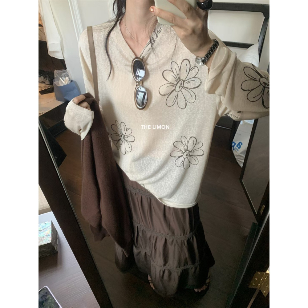 9080慵懶風花朵防曬衫(奶茶)