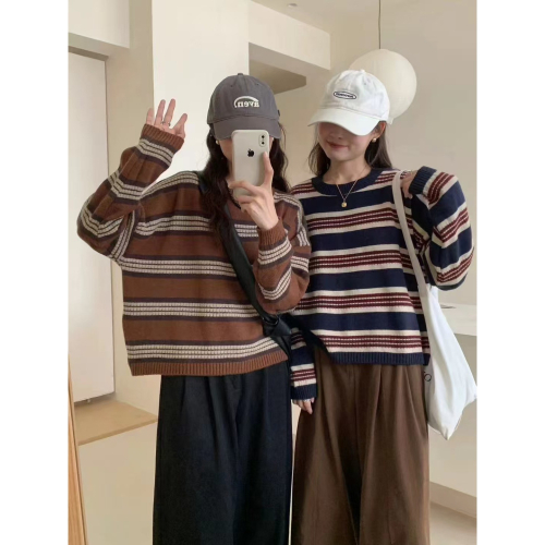 韓系撞色條紋針織上衣,以其寬鬆的版型和吸睛的色彩搭配,是打造秋冬時尚休閒穿搭的必備單品。