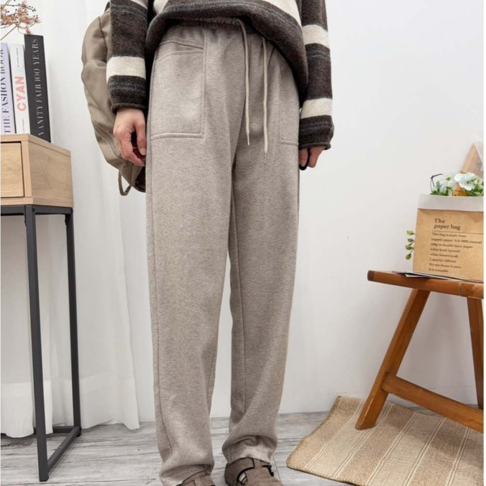 現貨𖤐兔子魚✓║L149274 女長褲 休閒長褲 冬天長褲 人字紋長褲 毛呢長褲 抽繩長褲 直筒長褲 口袋長褲 百搭長