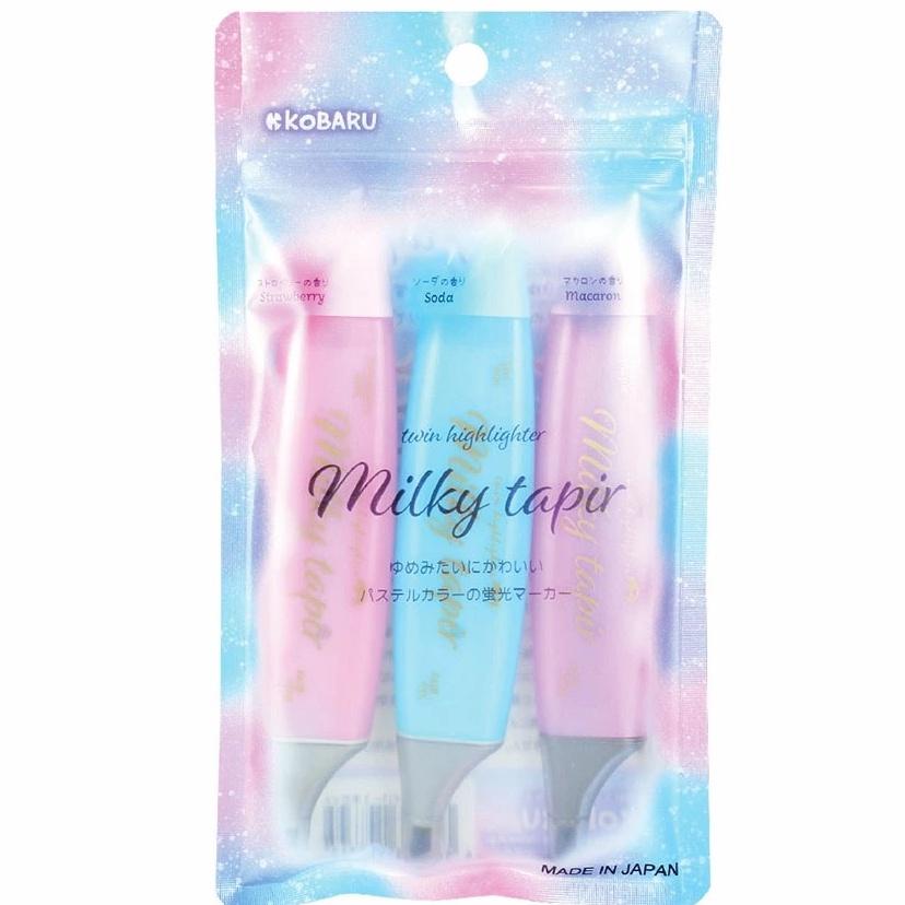 [日本製] 新色系 新登場 koBARU Tapir 雙色螢光筆 雙頭 水性 3入 (草莓味 蘇打味 馬卡龍味)
