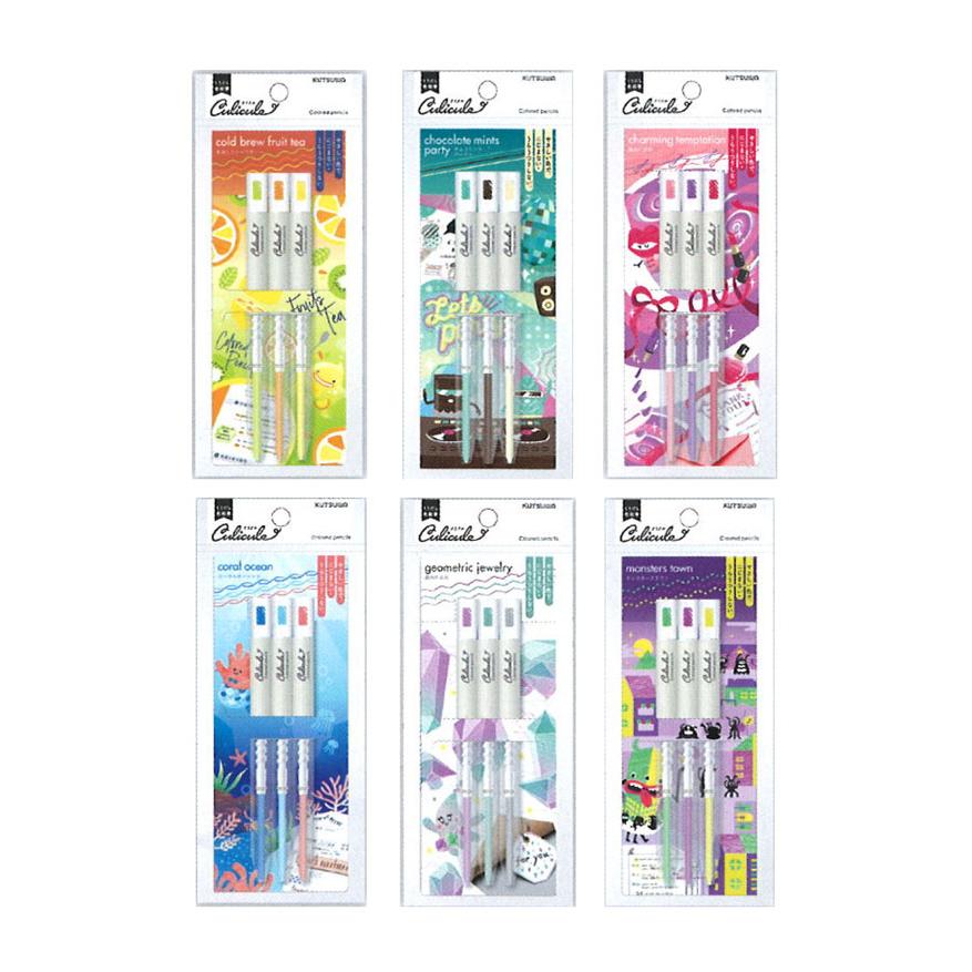 [日本製] Kutsuwa Culicule 3色入 粉彩色鉛筆 色鉛筆 旋轉伸縮設計 可使用橡皮擦擦拭 便於隨身攜帶
