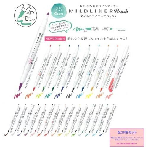 [日本製] Zebra 斑馬牌 MILDLINER Brush 雙頭 螢光筆 細字筆 色筆 MARKER 軟頭 水性顏料