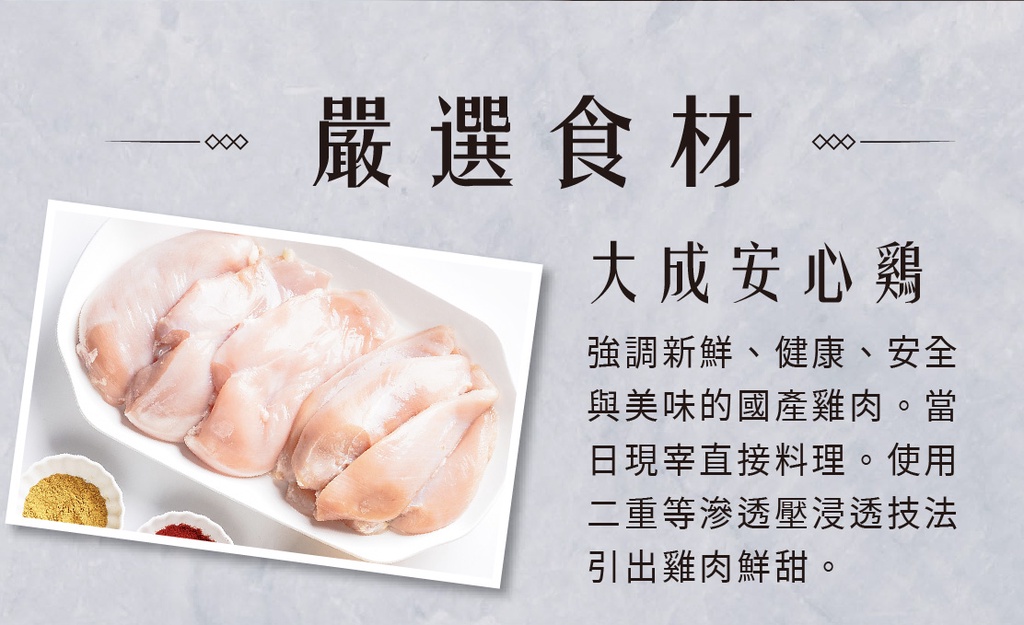 由知名餐飲集團的主廚研發的配方和流程,同時捨棄一般大公司所使用大量生產的設備,堅持少量生產維持品質,軟嫩多汁,回購率超高,多間健身房指定團購合作品牌