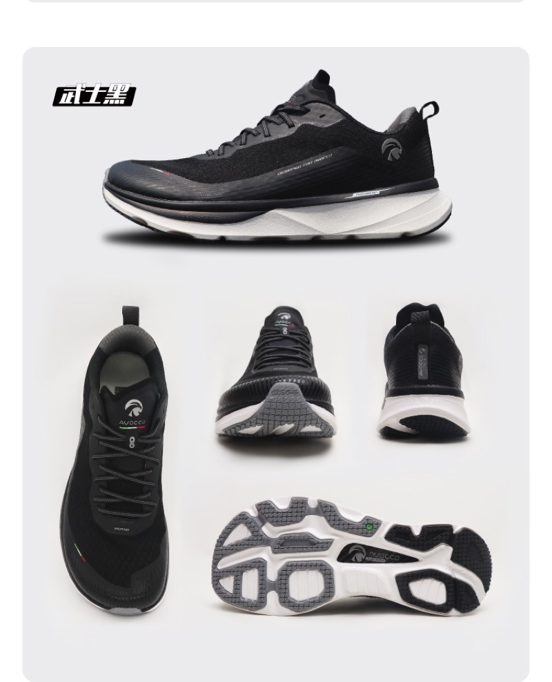 選一雙合適的鞋我們要學會先看結構,而不是緊緊盯著配置! AVOCCO的跑鞋全系秉承寬頭寬掌的設計理念(最早源自馬拉松運動員Hussein Ahmed Salah),前掌寬鬆,後身包緊,因此具備非常科學的腳型結構設計。在每邁出一步時,腳趾就能擁有足夠的空間伸展,同時鞋口緊緊鎖住腳背,防止腳趾往前衝撞。