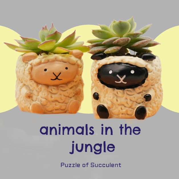 【拼肉肉】肉肉動物園 綿羊+黑面羊多肉花盆X2 每色各1