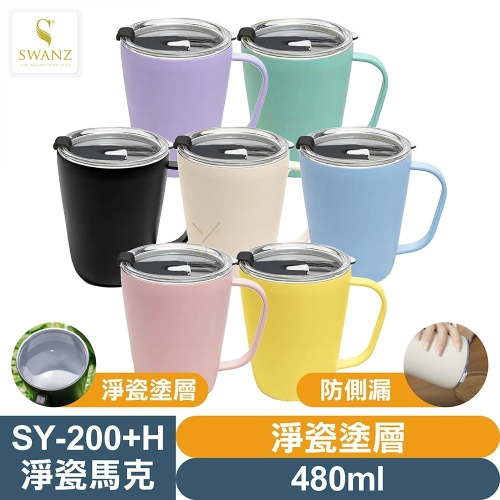 SWANZ 淨瓷馬克杯【💦480ml】【淨瓷塗層、大口徑、輕量防碎、氣密防漏、真空絕緣保溫保冷】
