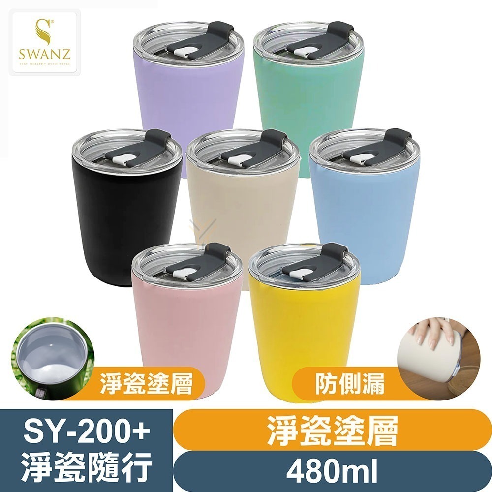 SWANZ 淨瓷隨身杯【💦480ml】【淨瓷塗層、大口徑、輕量防碎、氣密防漏、真空絕緣保溫保冷】