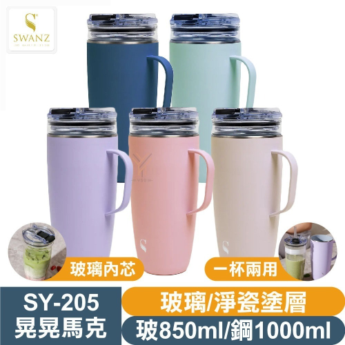 SWANZ 晃晃馬克杯【💦玻850/鋼1000ml】【天鵝瓷|玻璃內芯|淨瓷層塗層|大口徑|一杯兩用|疊套保溫保冷】
