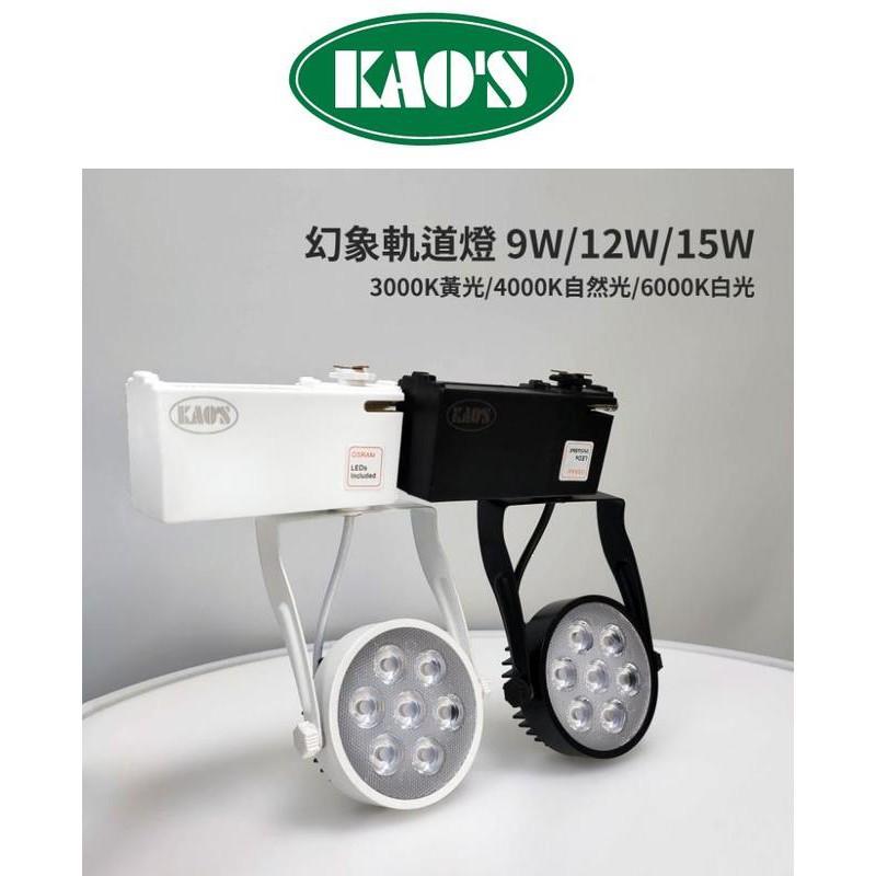 新莊好商量~KAOS LED 9W 12W 15W 軌道燈 12燈 歐司朗 晶片 一年保固 幻象 全電壓 投射燈