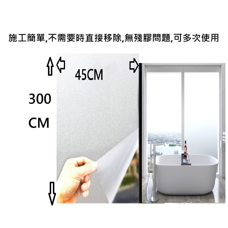 寬度45CM X 300CM 純磿砂膜背面無粘膠,靜電吸附式貼膜.