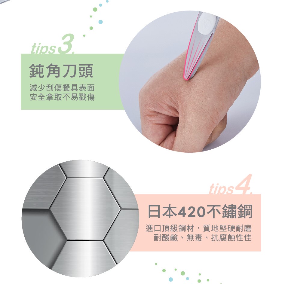 2、日本420不鏽鋼:日本進口頂級鋼材,質地堅硬耐磨、耐酸鹼、無毒、抗腐蝕性佳