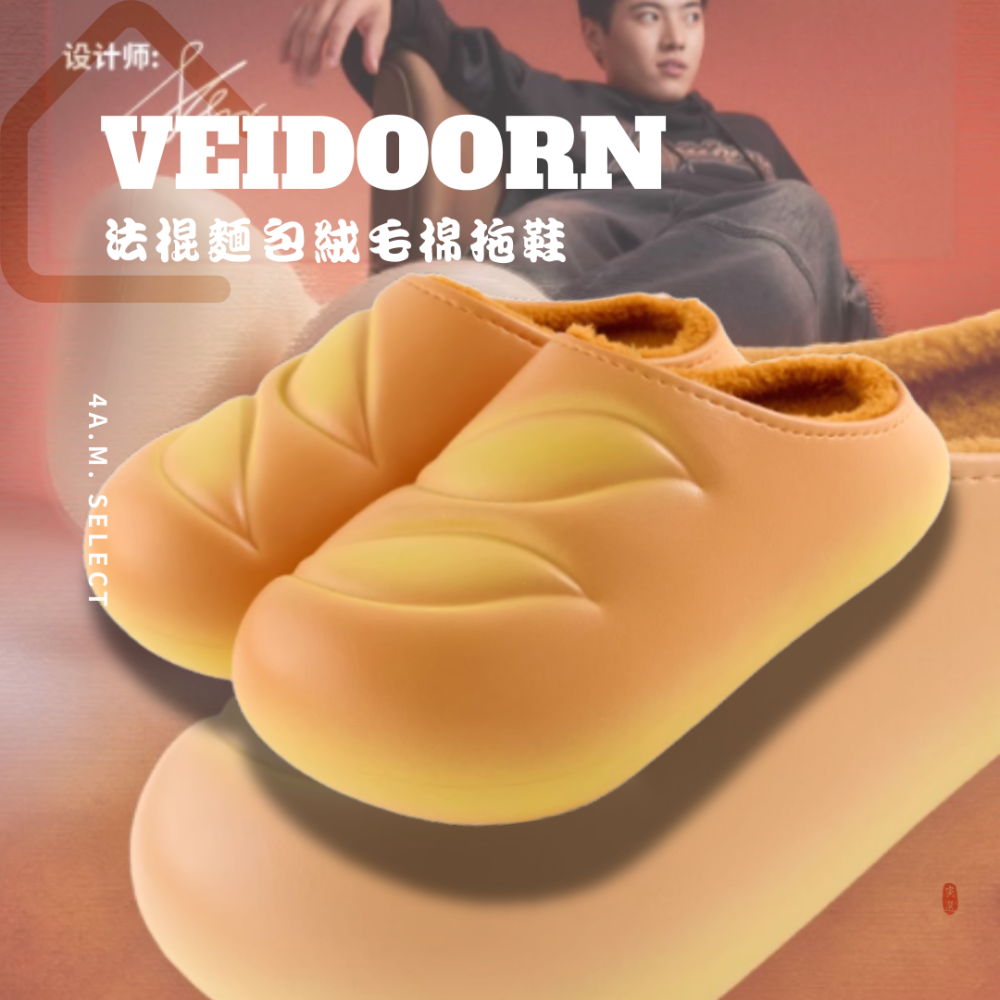《4AM寅選》 Veidoorn維動 法棍麵包絨毛棉拖鞋 新品上市 冬季拖鞋 恢復拖鞋 踩屎感 保暖 居家 拖鞋 男